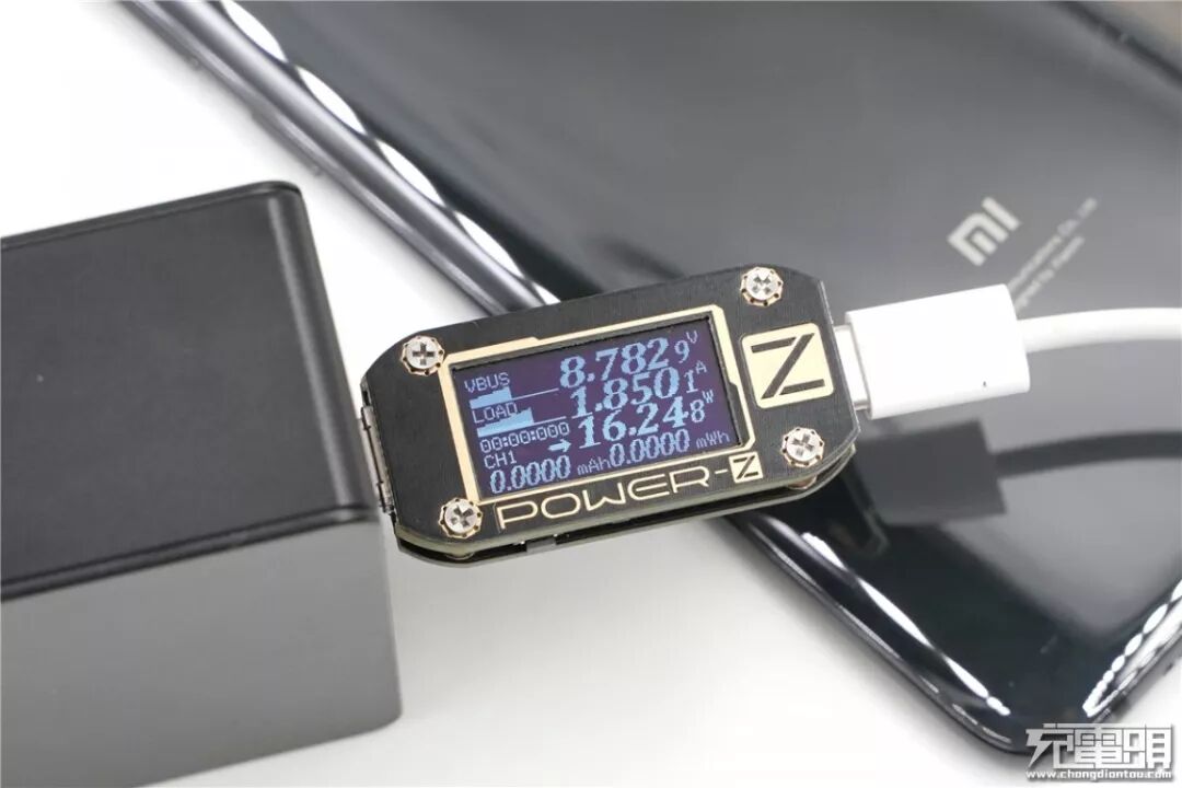 充小米9,电压8.78V,电流1.85A,功率16.24W,开启PD快充。