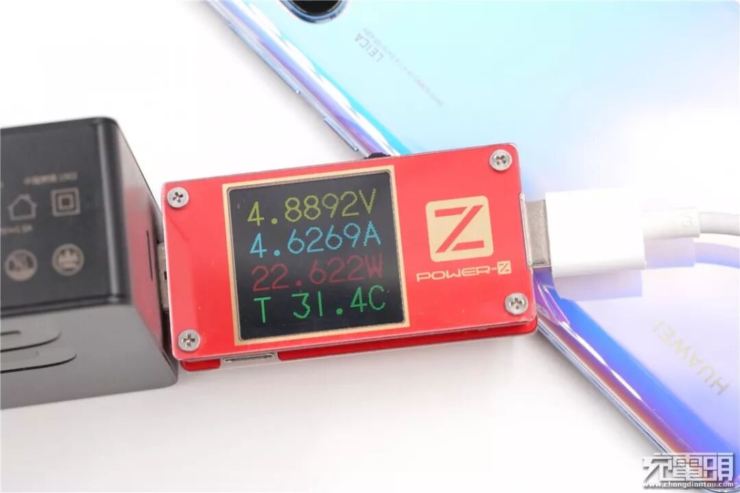 充华为P30 Pro,电压4.88V,电流4.62A,功率22.62W,开启SCP快充。