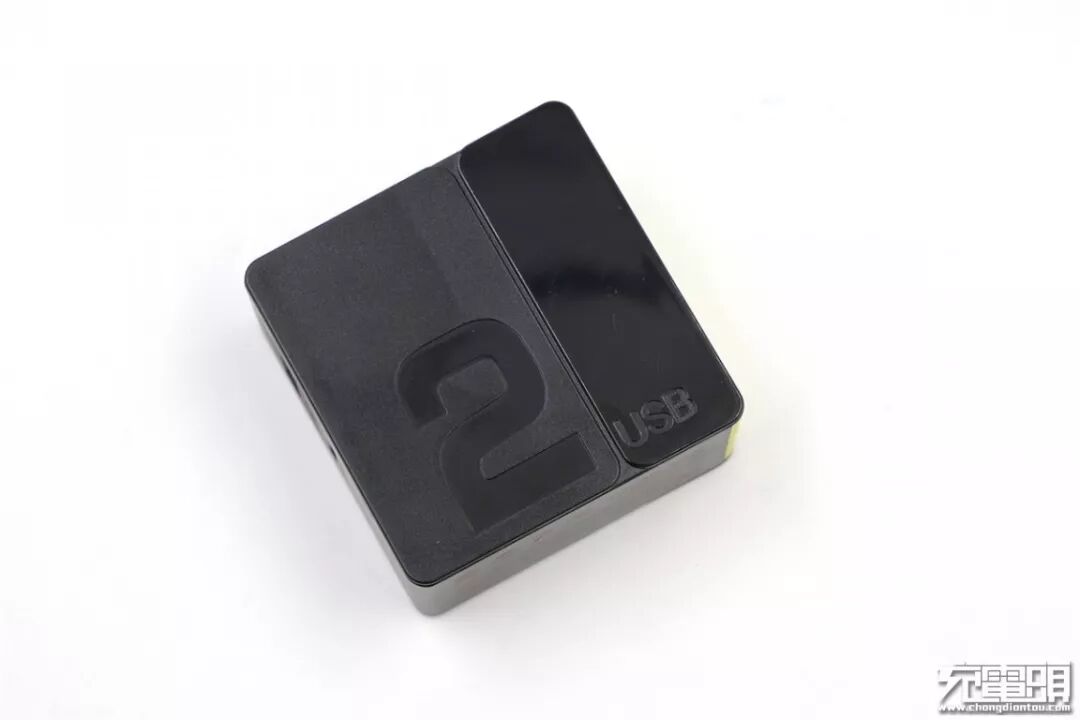 充电器背面的设计风格与正面一致,标注有“2 USB”字样,很直观就能了解到该款充电器具备2个USB输出口。