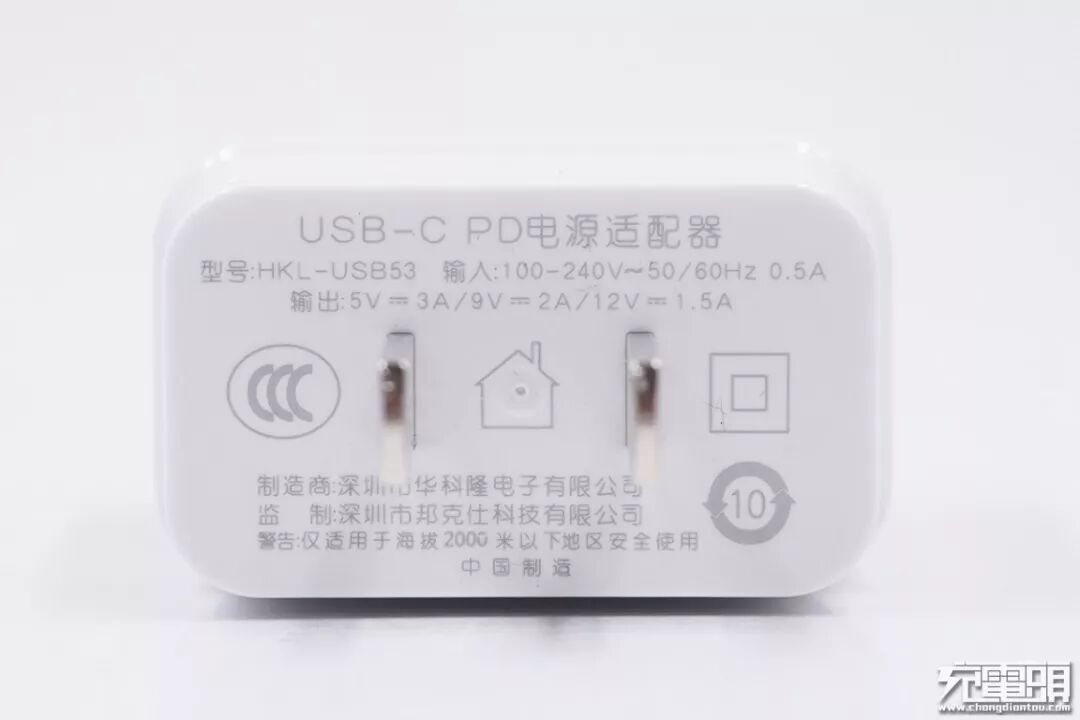 产品型号:HKL-USB53;输入:100~240V 50/60Hz 0.5A;输出:5V/3A、9V/2A 12V/1.5A;制造商:深圳市华科隆电子有限公司;监制:深圳市邦克仕科技有限公司,产品已经通过了CCC认证。