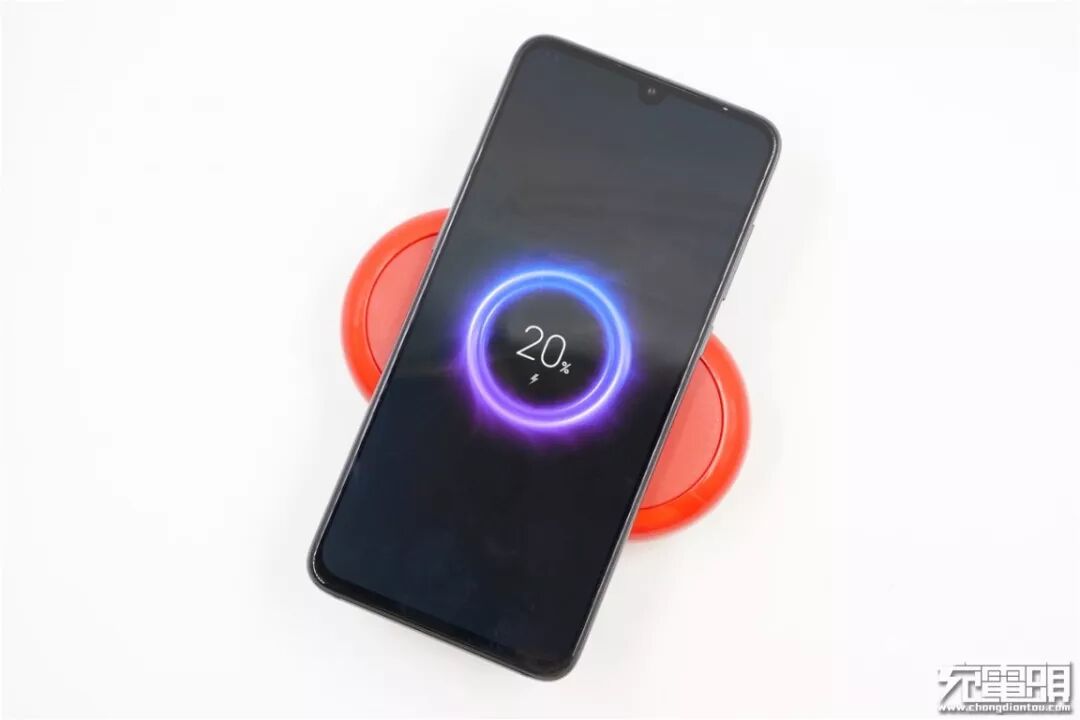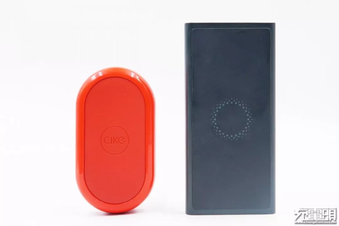 CIKE小红玩二合一无线充移动电源可给小米9无线充电。