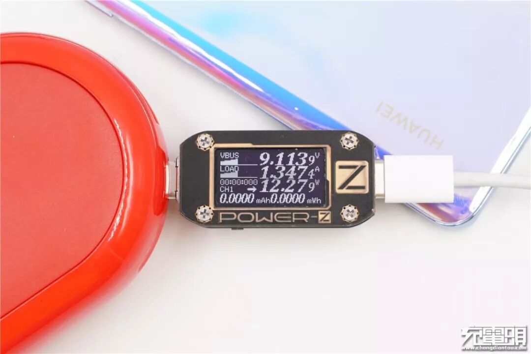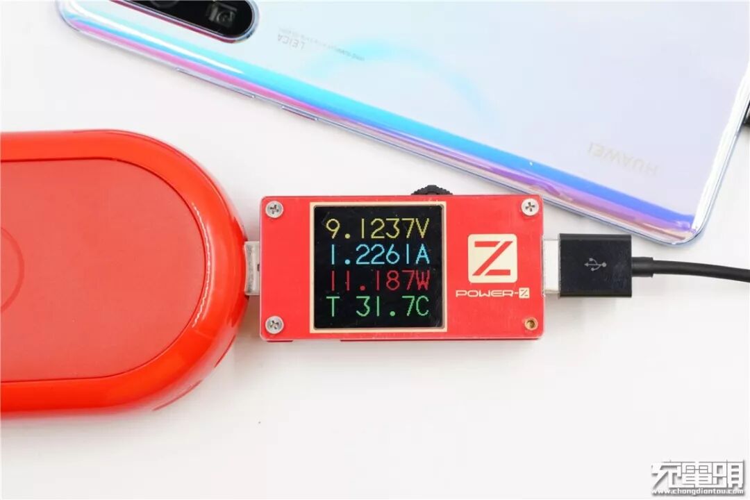 CIKE小红玩支持USB-C与USB-A同时输出,分别给P30 Pro、Mate 20 Pro充电,功率为8.72W与6.23W,输出电压锁定在5V。