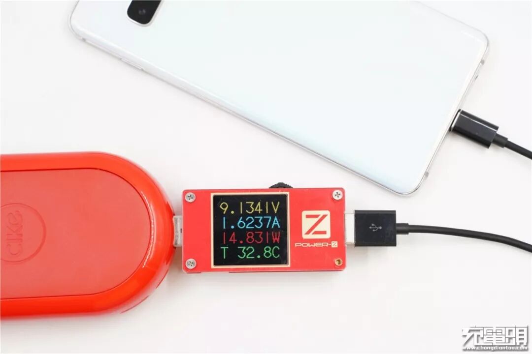 充三星S10+,电压9.11V,电流1.62A,功率14.77W,开启PD快充。