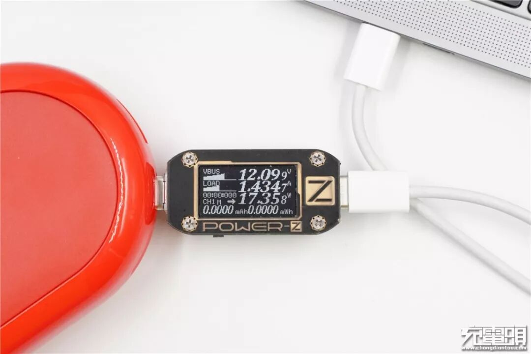 充MacBook Pro,电压12.09V,电流1.43A,功率17.35W,开启PD快充。