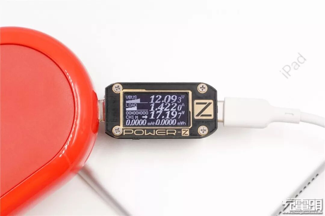 充iPad Air3,电压12.09V,电流1.42A,功率17.19W,开启PD快充。