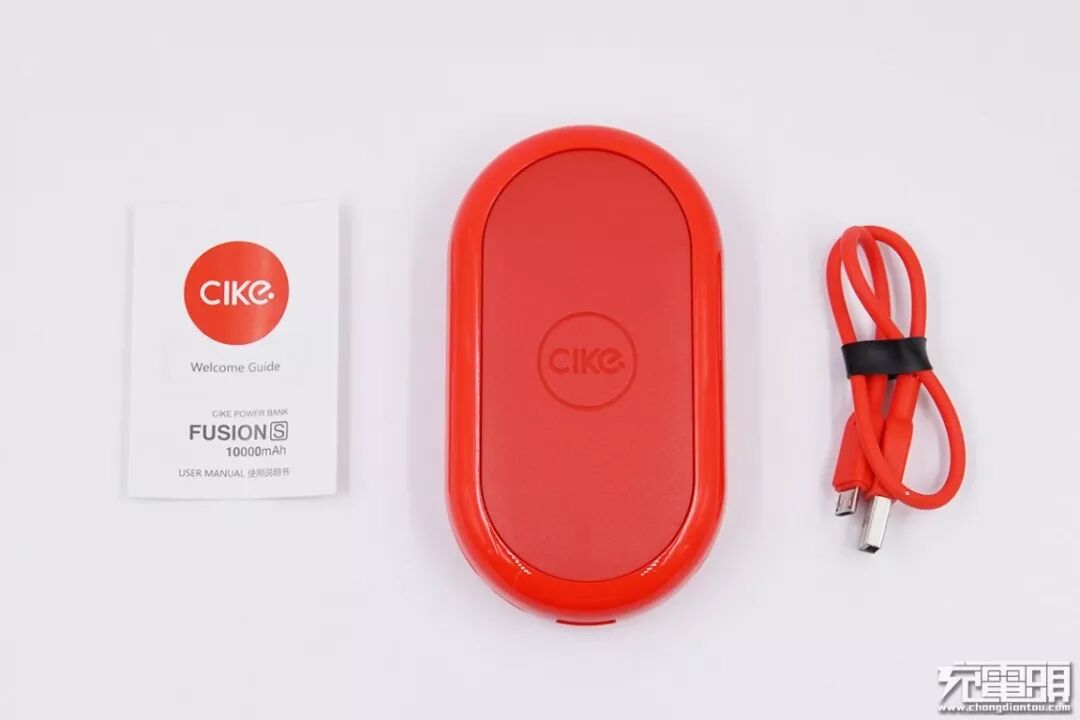 盒内物品一览:说明书、CIKE小红玩二合一无线充移动电源、MicroUSB数据线。