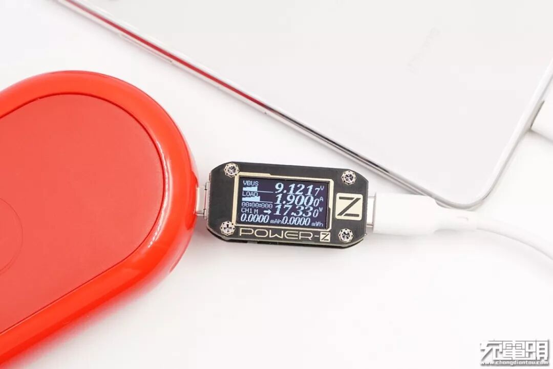 充iPhone X,电压9.12V,电流1.9A,功率17.33W,开启PD快充。