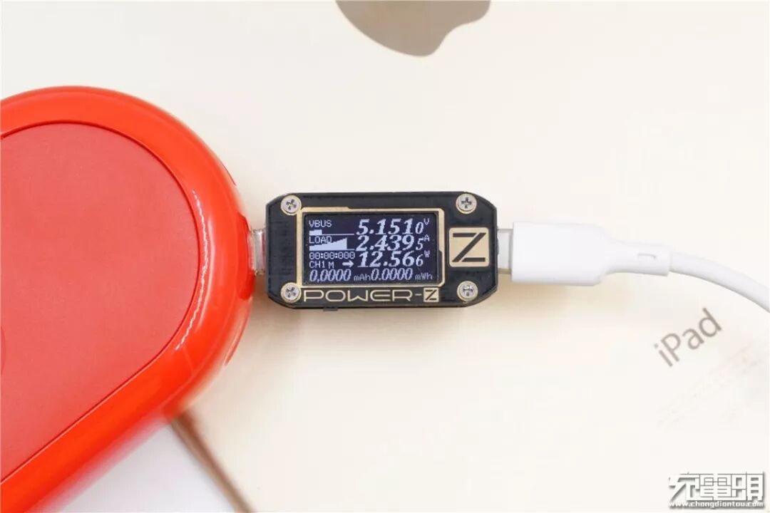 充iPad Air2,电压5.15V,电流2.43A,功率12.56W,开启Apple 2.4A充电模式。