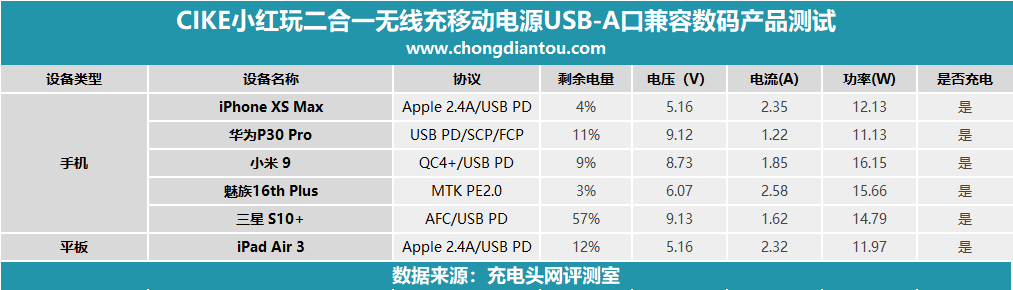 CIKE小红玩USB-C口兼容性不错,均能与所测试的设备握手相对应协议充电。
