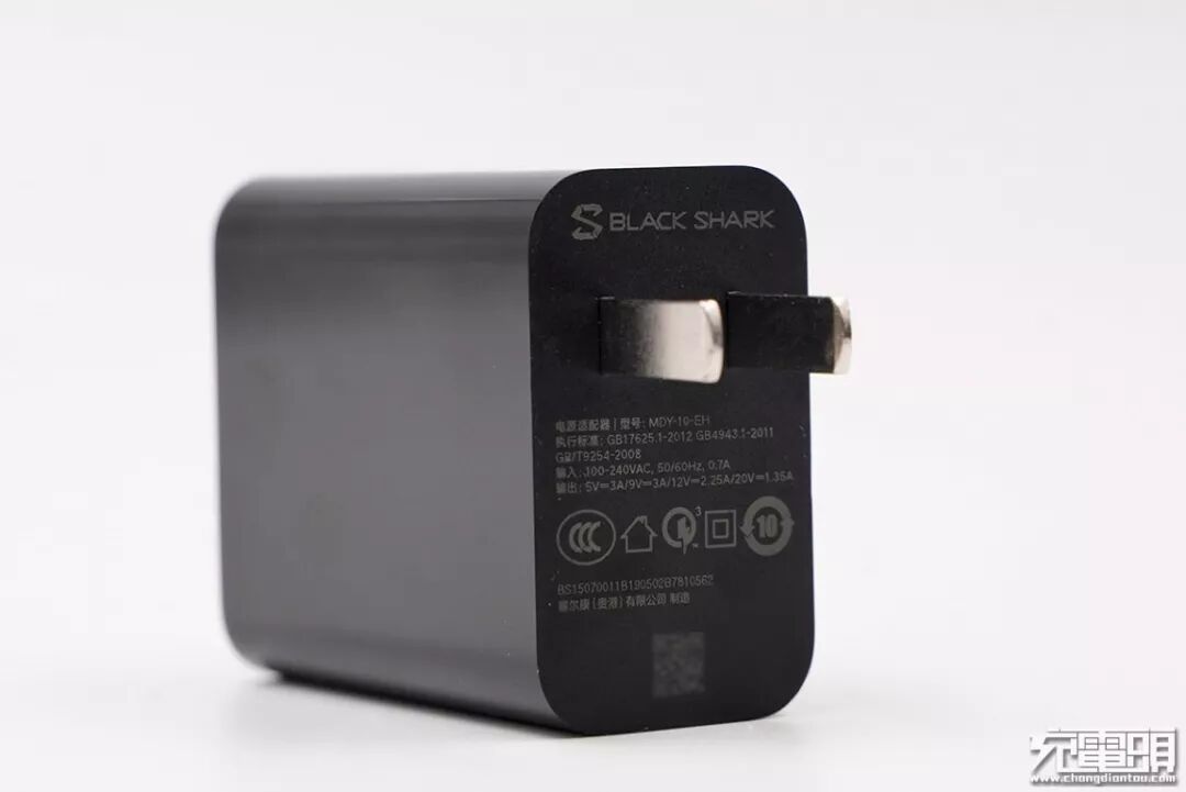 充电器型号与小米9标配的一致,看来黑鲨游戏手机2 Pro支持的27W快充就是小米9上搭载的27W Charge Turbo极速快充。