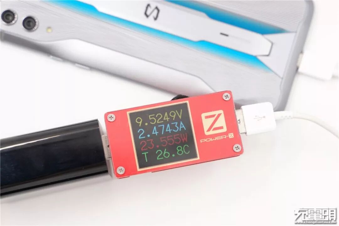 使用黑鲨游戏手机2 Pro原装27W充电器为其充电,电压9.52V,电流2.47A,功率23.55W,开启27W Charge Turbo快充。