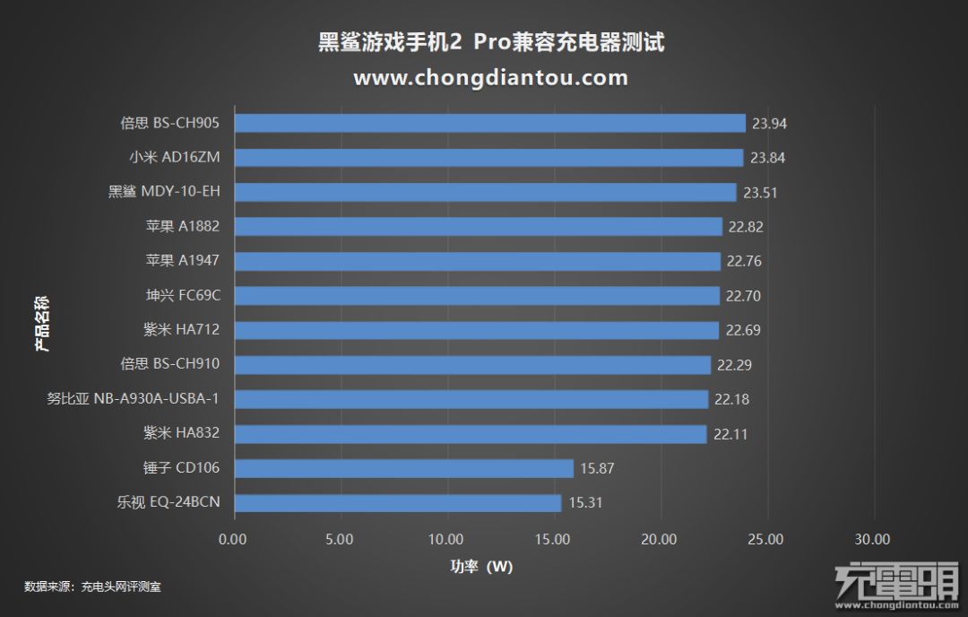 在兼容性测试中发现,黑鲨游戏手机2 Pro支持PD、QC和27W Charge Turbo三种快充,并且PD协议充电模式下,功率可以达到24W+,下面小编将测试PD、QC与27W Charge Turbo协议下黑鲨游戏手机2 Pro全程充电的耗时情况。下面先来看下功率变化情况。