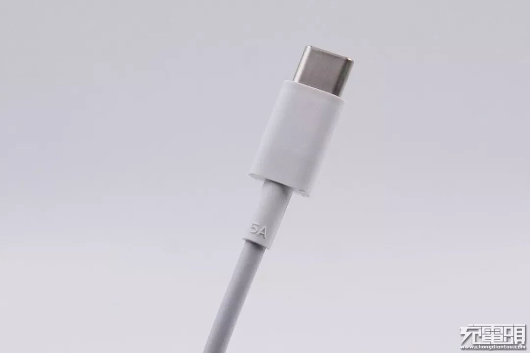 数据线两头网尾均进行了加粗加固处理,使其更耐弯折,不易爆开损坏。网尾处还标有“5A”字样。