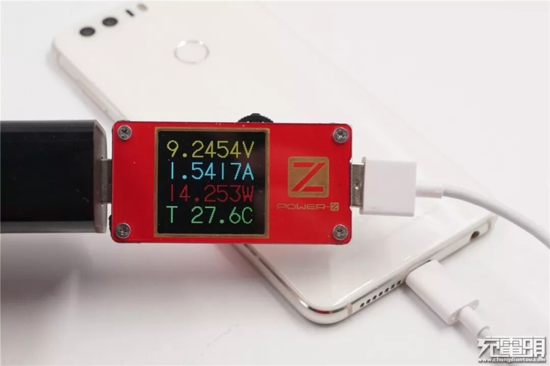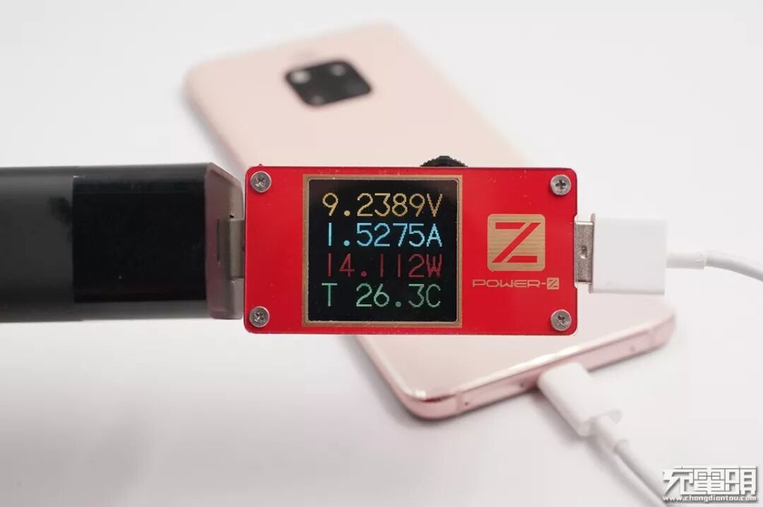 充华为Mate20 Pro,电压9.23V,电流1.52A,功率14.11W,开启FCP快充。