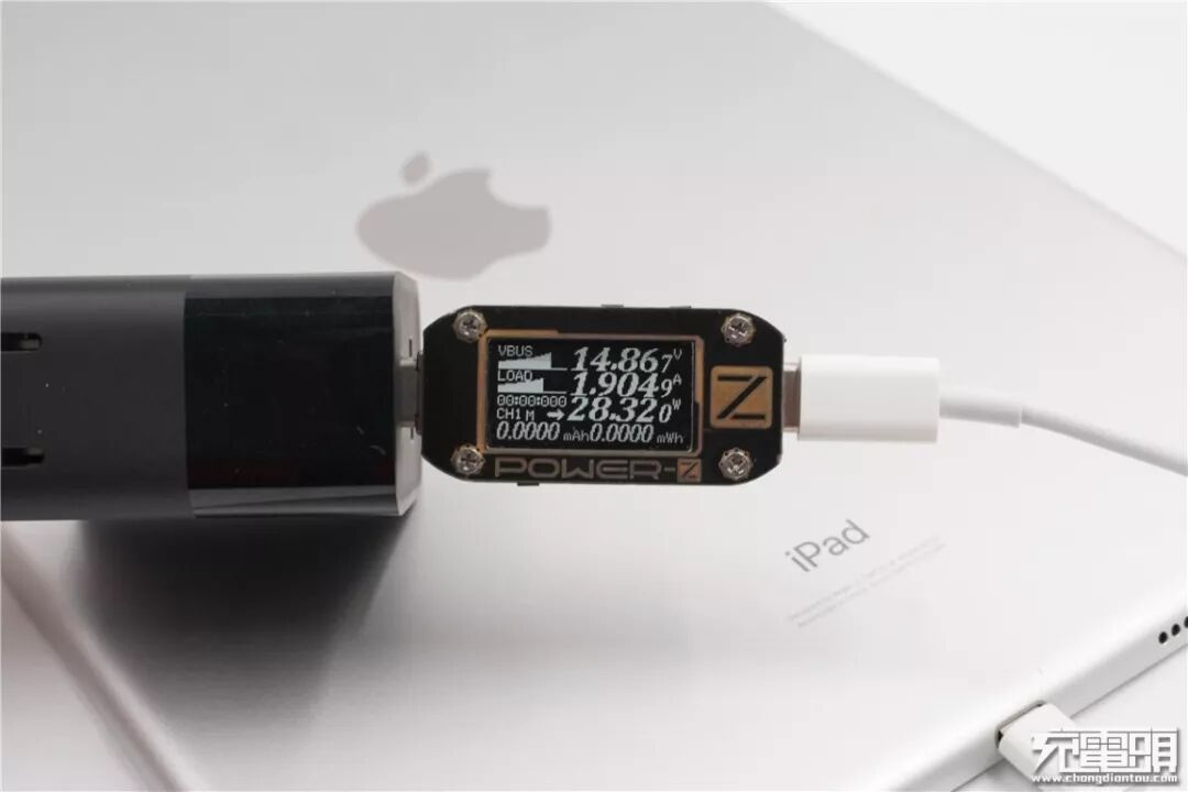 充iPad Air3,电压14.86V,电流1.90A,功率28.32W,开启PD快充。