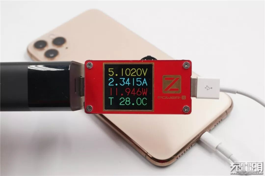 使用紫米30W 1A1C双口充电器的USB-A接口充iPhone 11 Pro Max,电压5.10V,电流2.34A,功率11.94W,以Apple 2.4A模式进行充电。