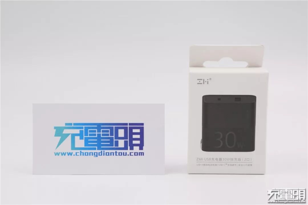 充电器包装为白色,顶部有挂钩,正面印制ZMI的LOGO与产品实图,实图下方印有产品名称:ZMI USB充电器30W快充版(2口)。