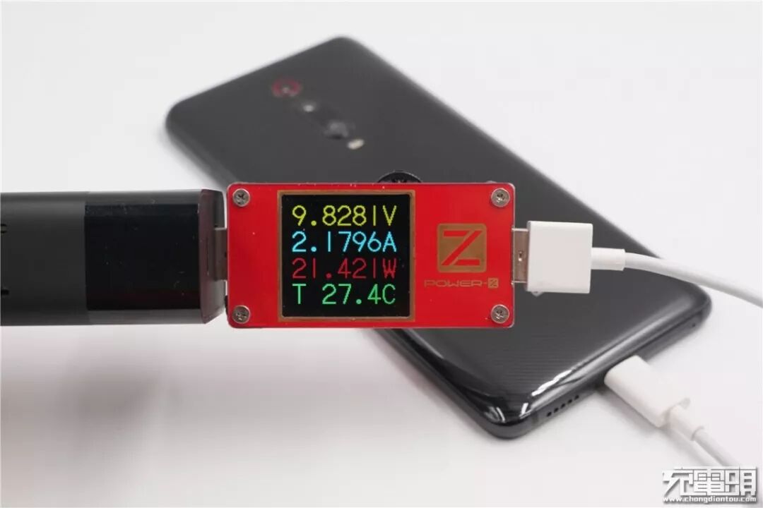 充红米K20 Pro,电压9.82V,电流2.17A,功率21.42W,开启Charge Turbo快充。