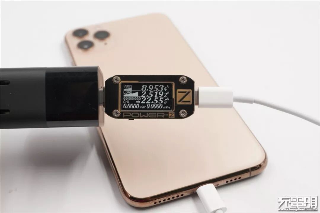 使用紫米30W 1A1C双口充电器的USB-C接口充iPhone 11 Pro Max,电压8.95V,电流2.51A,功率22.55W,开启PD快充。
