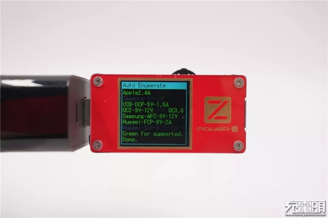 紫米30W 1A1C双口充电器的USB-A口有着不错的兼容性表现,测试设备都能充电,支持QC、AFC、FCP、协议的设备也都能正常握手相对应协议。值得一提的是,紫米这款充电器相比小米1A1C增加了USB-A接口对小米的27W Charge Turbo快充的支持,小米9、红米K20用户的福音。