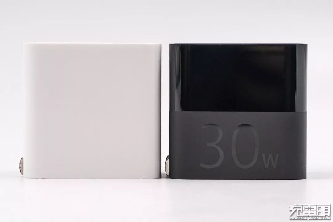 继承了65W小钢炮的光面与磨砂双色拼接设计,机身上的花纹改为30W。