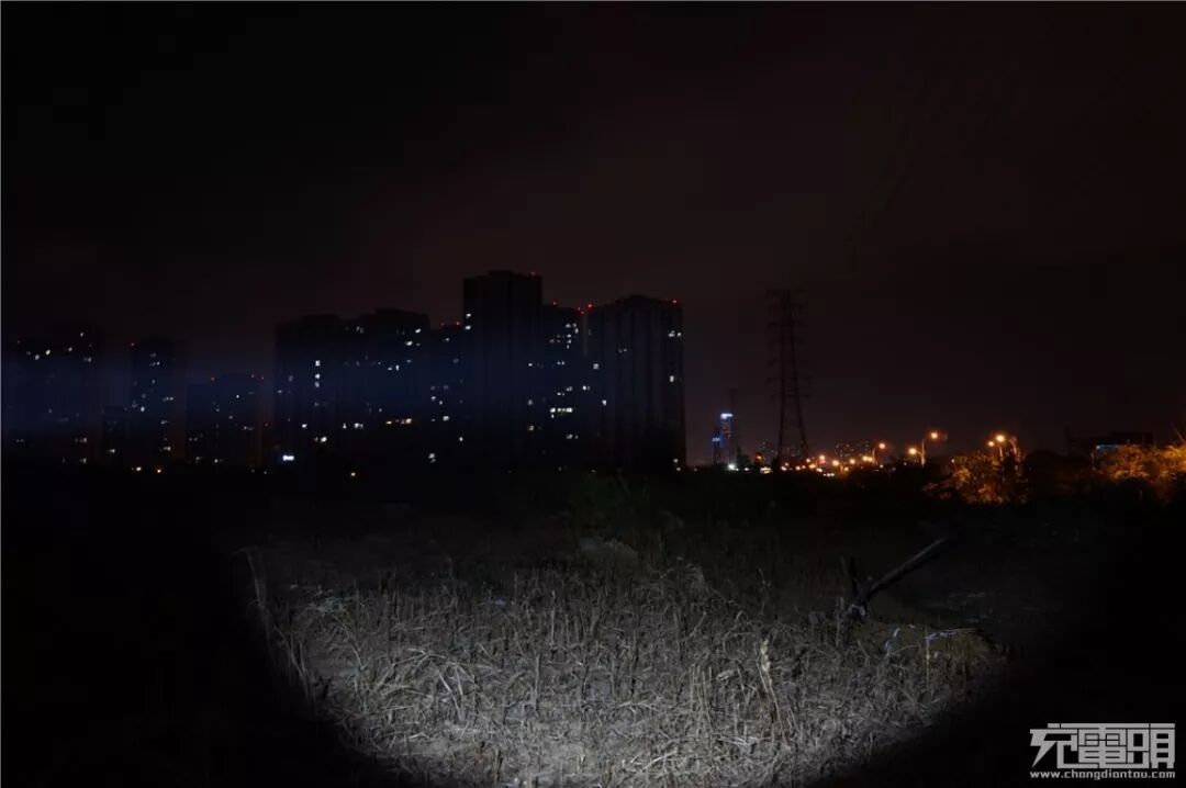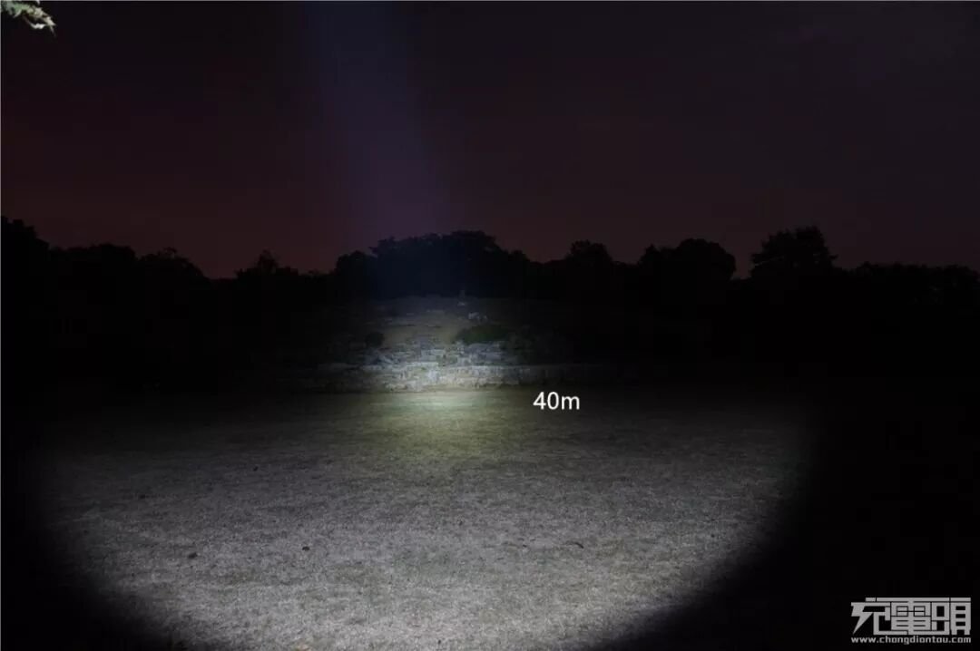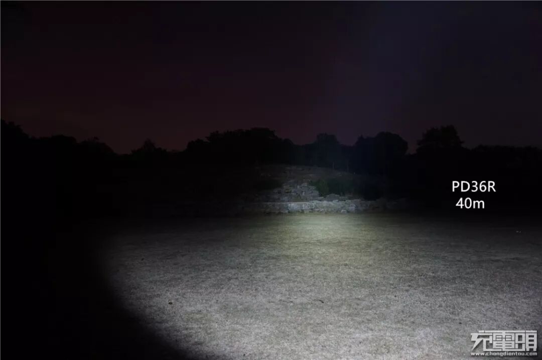 附加一张PD36R的40米图片,由于PD36R属于小直战术手电,泛光区域整体亮度提高,主光斑的亮度略低,远射略弱一些。