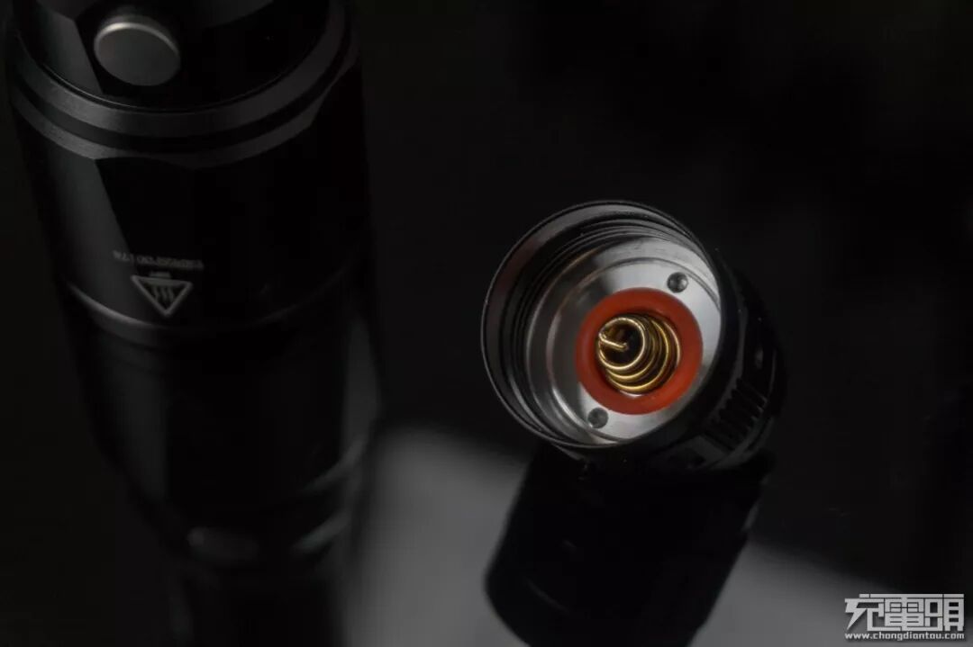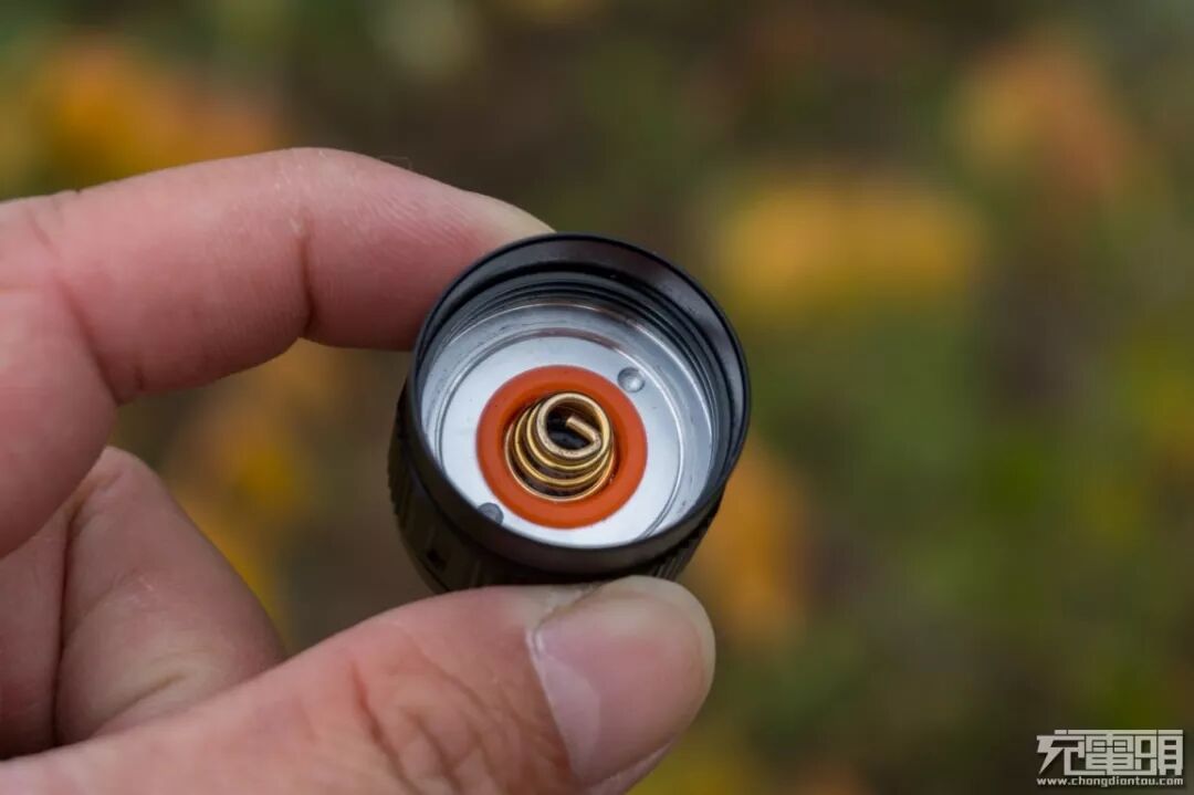 TK22 V2.0采用三段组合设计,中段螺纹双头硬氧均采用端面导电,尾按和头部采用镀金弹簧,工作稳定粗壮有力接触电阻更低。在使用转接筒实际操作时,平头18650就可以正常使用,当使用第三方平头21700电池,可以正常点亮,但晃动时有轻微响声,弹簧应该是正好可以接触点亮,但压力比较小,虽然能点亮但还是建议用户选择增加电芯长度,只有弹簧在压缩时电阻才会更小,而且点亮不代表能长时间正常工作,特别是在战术和户外使用,这些微小的细节容易引发不可控事件的发生。