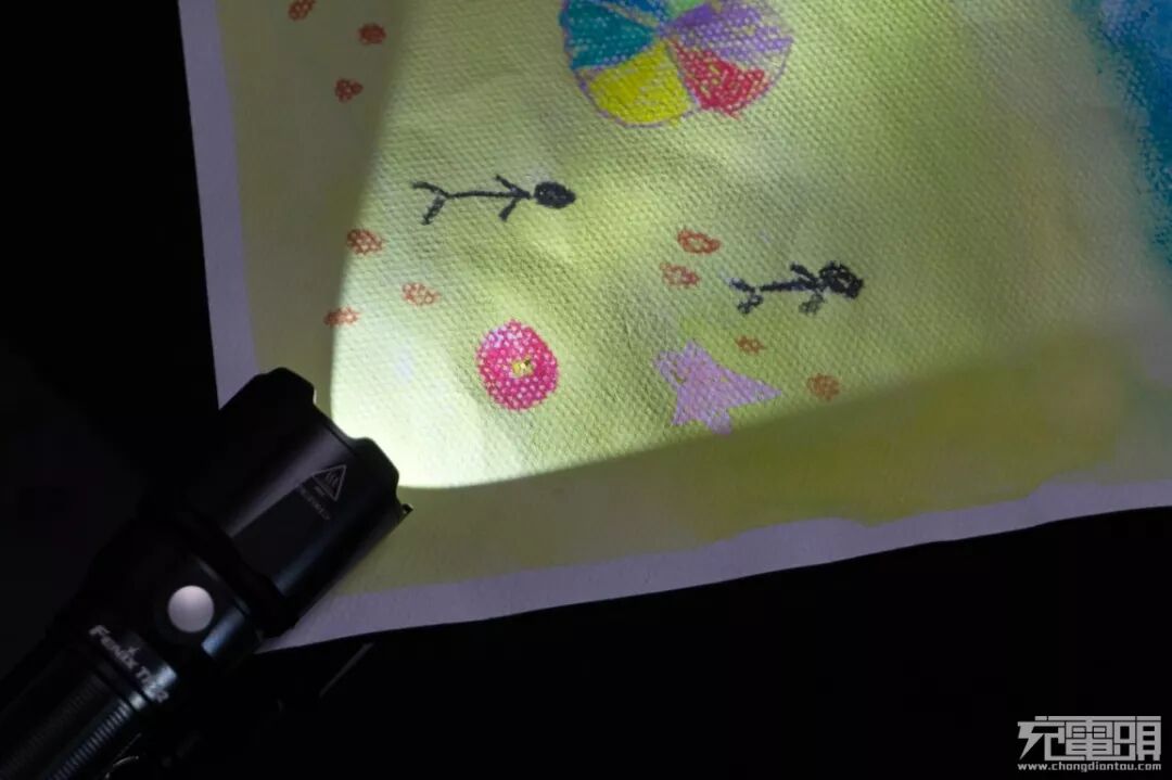 1米光斑图,下图是 Fenix 两款对比图,光色差不多,TK22 V2.0的主光斑略小点。光色问题,话题有点沉重,优缺共同体。说到SST-40灯珠相信有一部分筒友要颤抖了,单从光色看缺实少了点啥,品质优劣同等重要,渣渣做工配个CREE显然不行,产品设计、氧化、做工、性能、续航、品控稳定性、售后缺一不可,可能本人手电在户外使用较多,从入手使用的这半个月来讲,渐变光色在户外使用的影响并不是太大,毕竟户外照射和墙面照射是不一样的视觉反光效果。