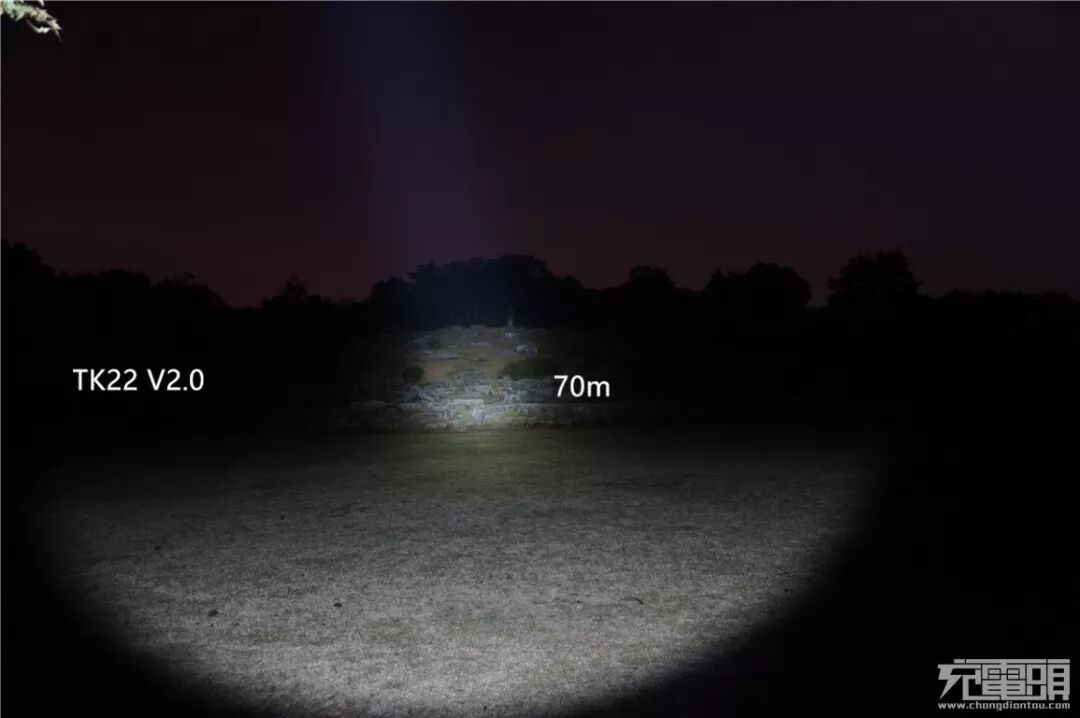 搭配较深光杯的TK22 V2.0表现一定不会让你失望,黑暗中一束光柱直冲夜空,在近距离观察时主光柱发散角非常小。