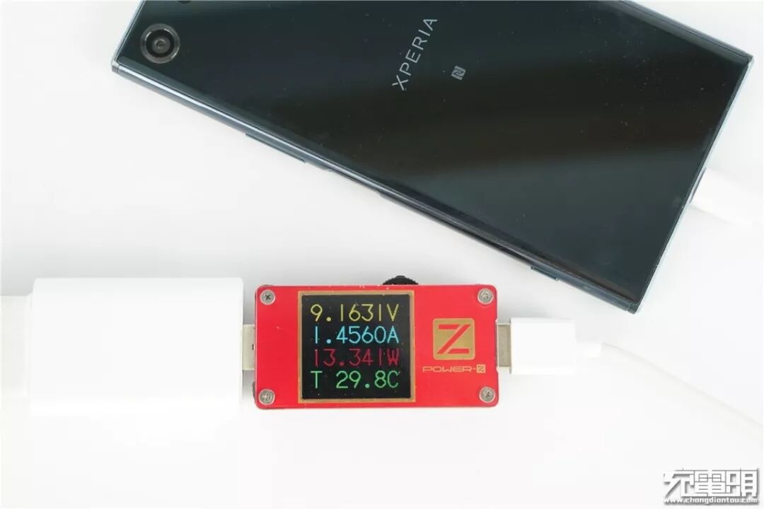 充索尼XZ Premium,电压9.16V,电流1.45A,功率13.34W,开启QC快充。