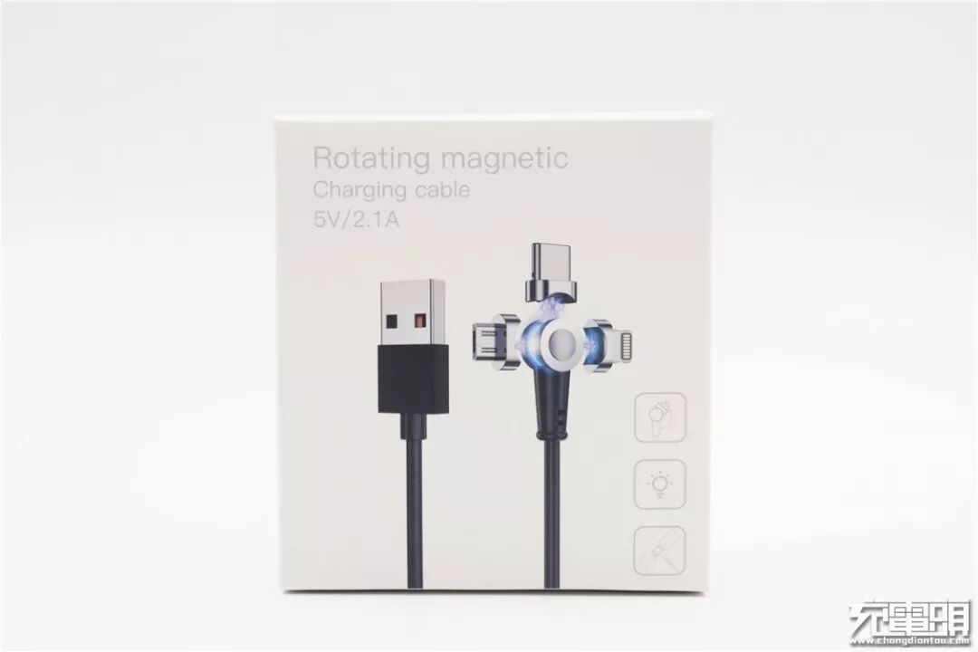 包装盒背面详细表达了磁吸头的旋转角度,可180°旋转。