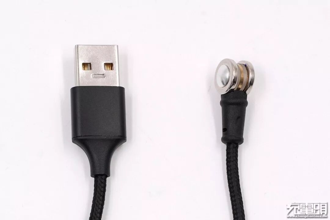 线头两端分别是USB-A接口和圆盘造型磁吸端。