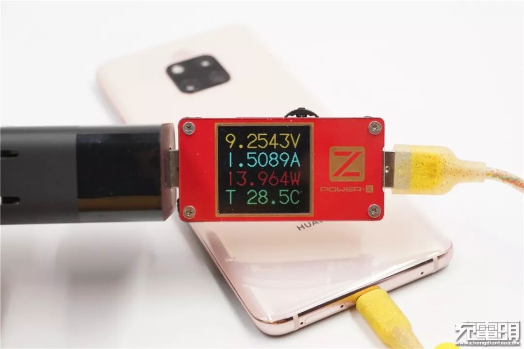为华为Mate20 Pro充电器,电压9.25V,电流1.50A,功率13.96W,正常开启华为FCP快充。