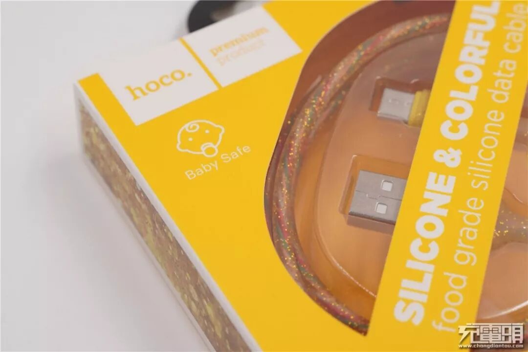 右上角特意注明Baby Safe,标明该数据线的外皮材质无毒害。
