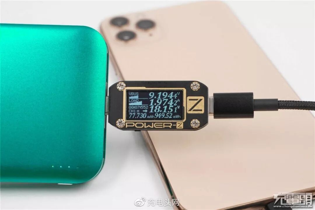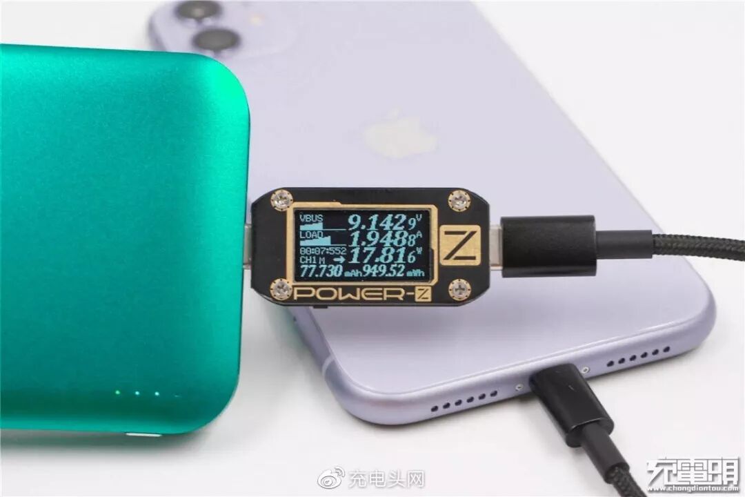充iPhone 11,电压9.14V,电流1.94A,功率17.81W,开启PD快充。
