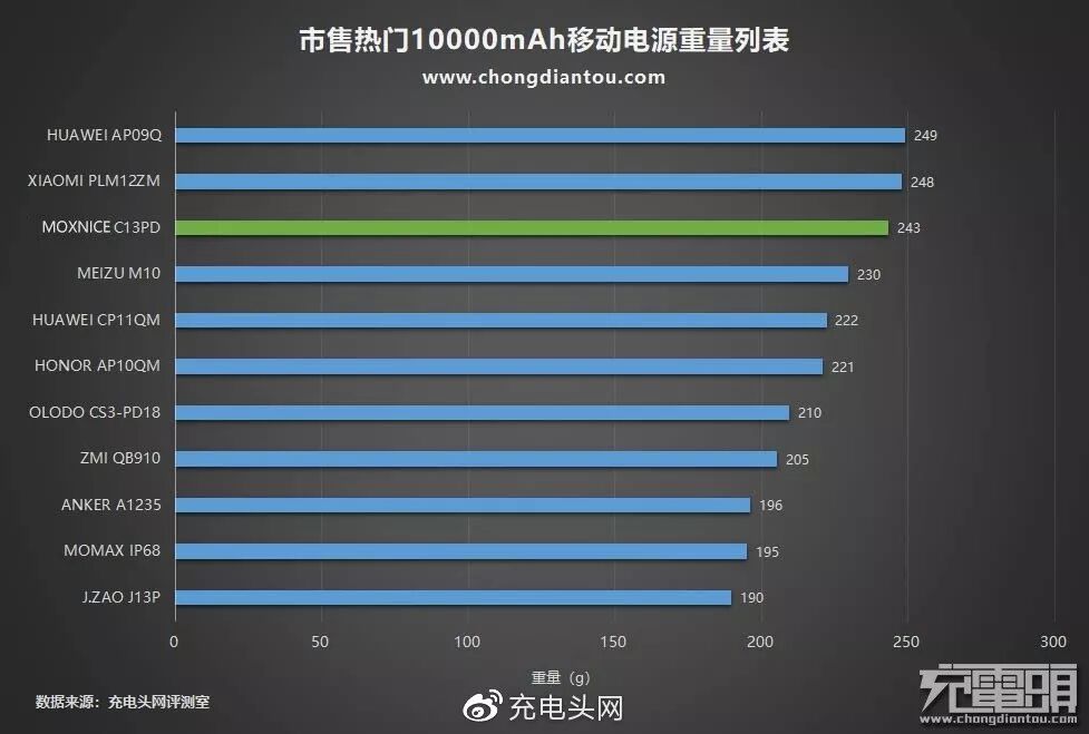 移动电源重242.3g。