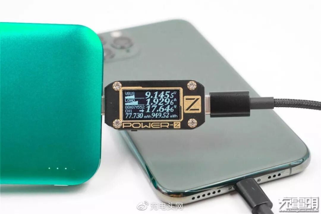 充iPhone 11 Pro,电压9.14V,电流1.92A,功率17.64W,开启PD快充。