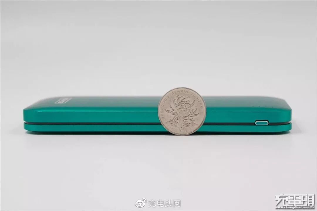 移动电源厚度与一元硬币半径相当。