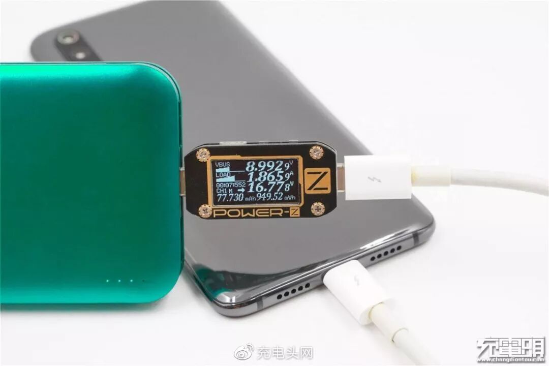 充小米9,电压8.99V,电流1.86A,功率16.77W,开启PD快充。