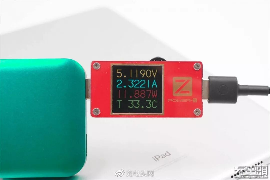 充iPad Air3,电压5.11V,电流2.32A,功率11.88W,开启Apple 2.4A充电模式。