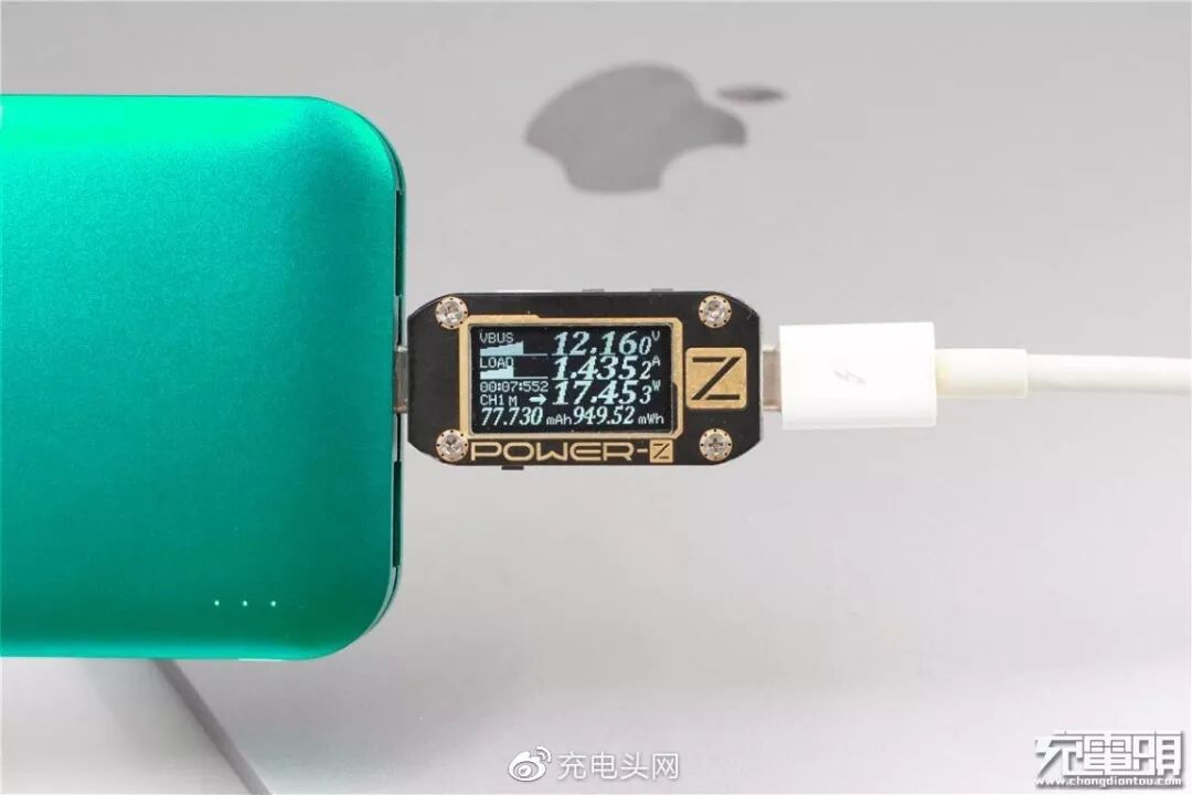 充MacBook Pro 13,电压12.18V,电流1.37A,功率16.77W,开启PD快充。
