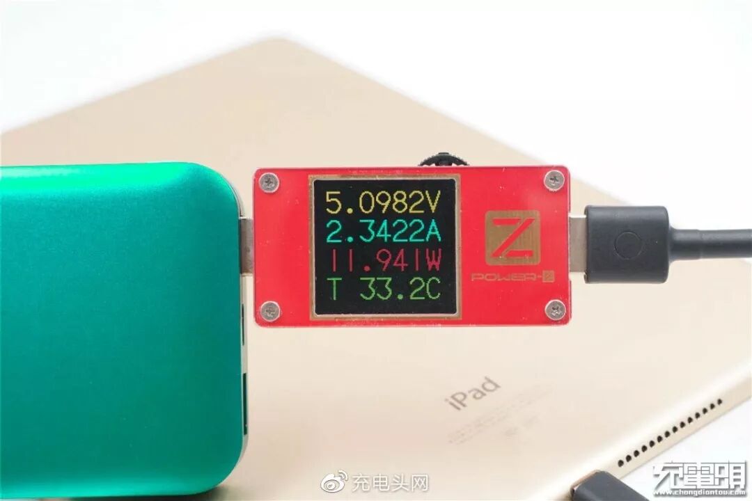 充iPad Air2,电压5.09V,电流2.34A,功率11.94W,开启Apple 2.4A充电模式。