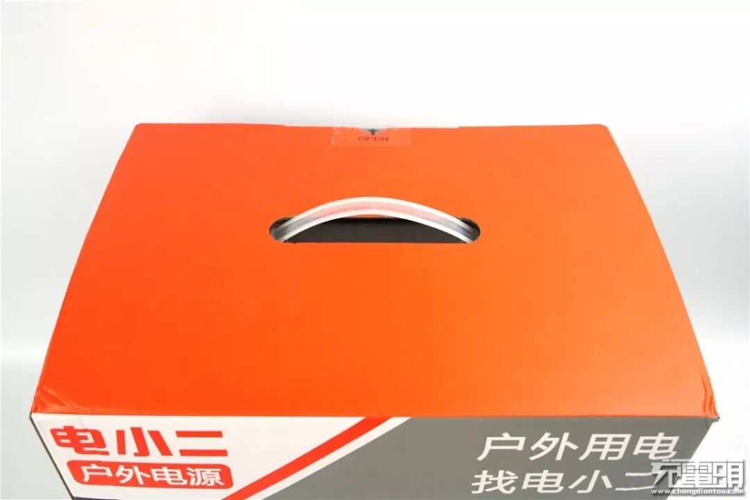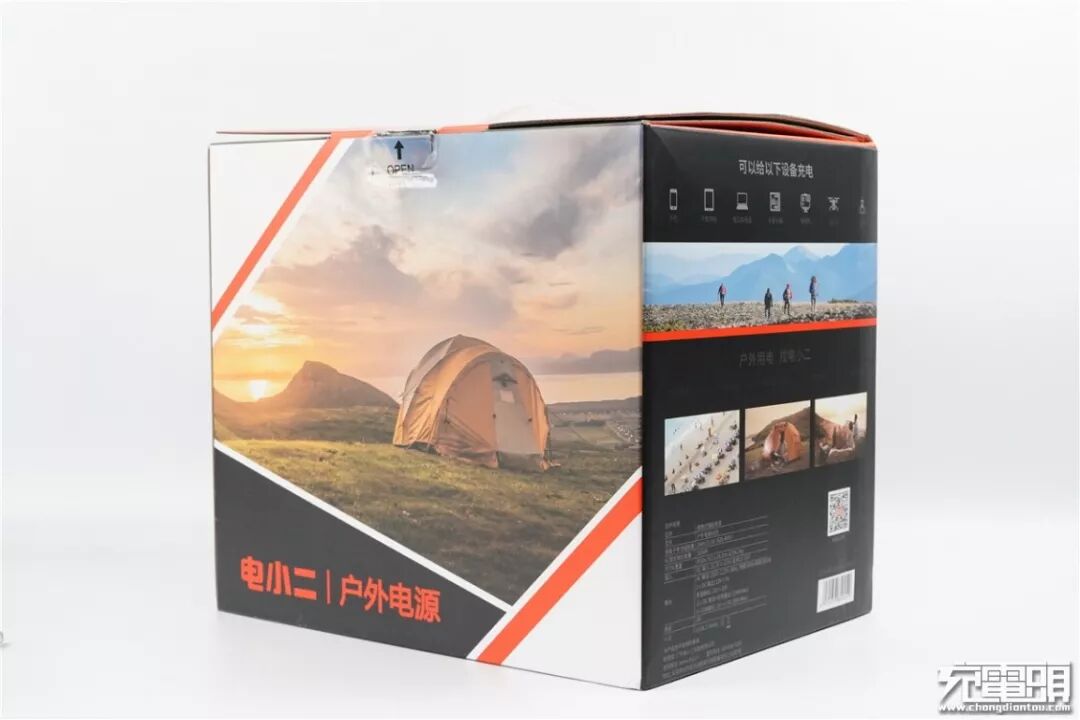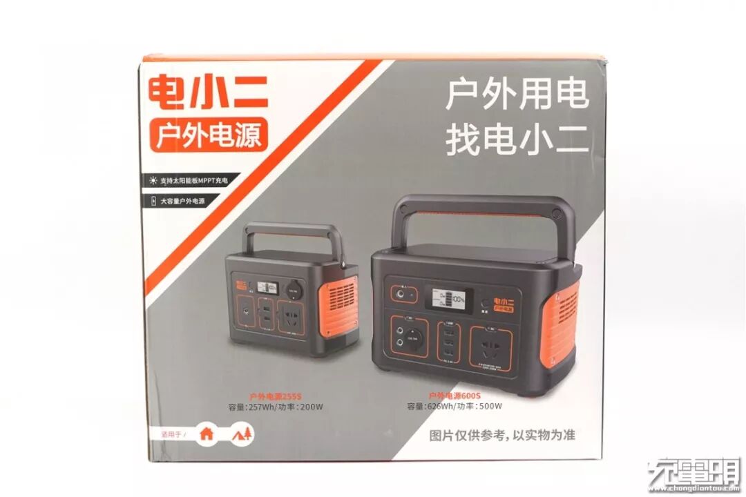 包装正面印有电小二家“户外电源”系列的两款产品: