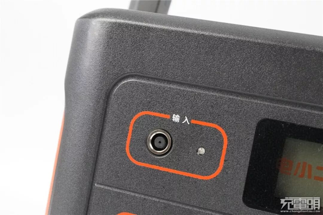 旁边还有一枚充电指示灯,整个输入接口被一圈品牌橙色环包围,并且有输入的标识,与橙色小隔窗形成鲜明的对比,输入、输出做到了很明显的区分。