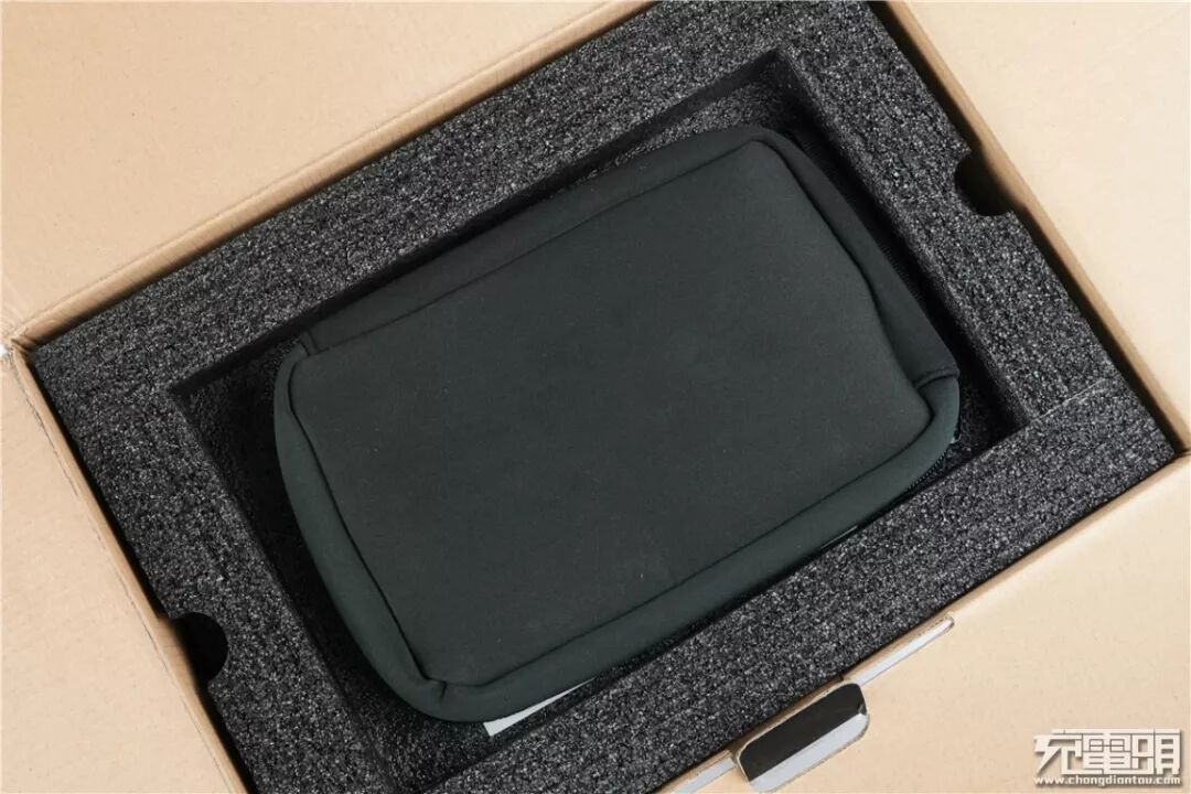 打开箱子,最先引入眼帘的一个黑色收纳包。
