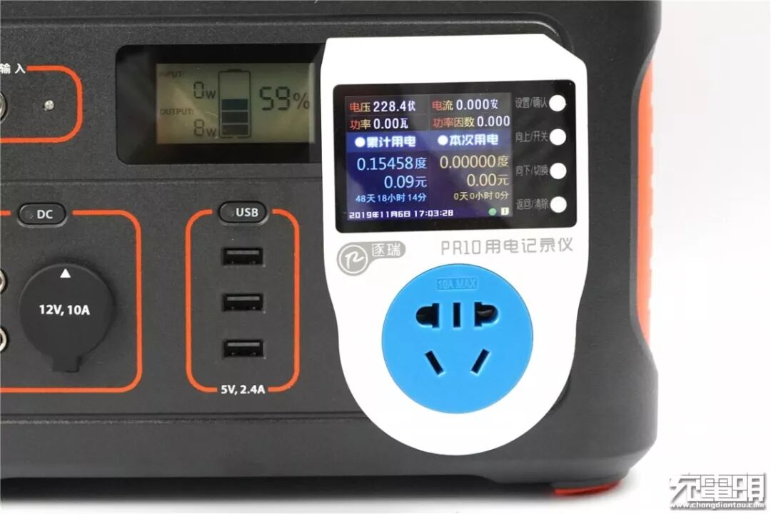 除了显示输入功率,显示屏还能显示输出功率、剩余电量信息。