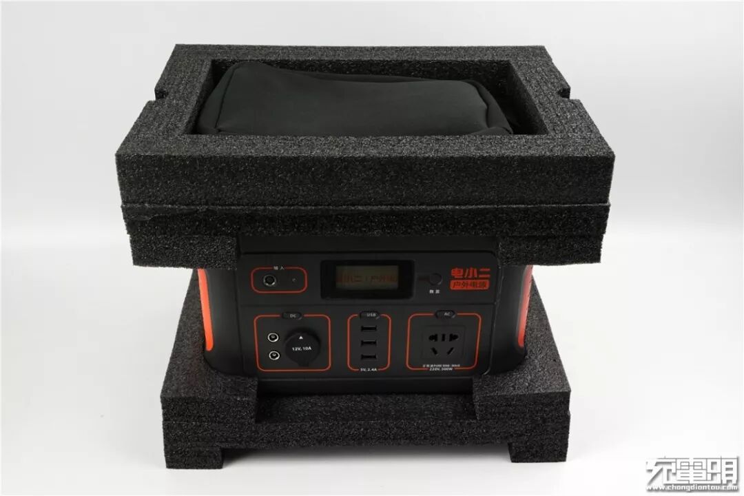 户外电源本体被黑色发泡材料包裹着,四侧悬空保护性极佳,应对粗暴的物流运输也能保障好产品不受损坏。