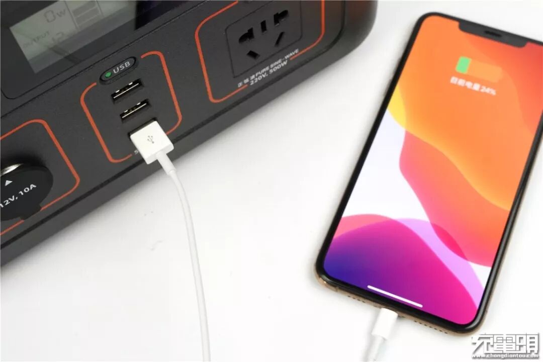 交流接口也可以通过插线板扩展出多个接口,500W的大功率输出足够多个小电器同时使用。