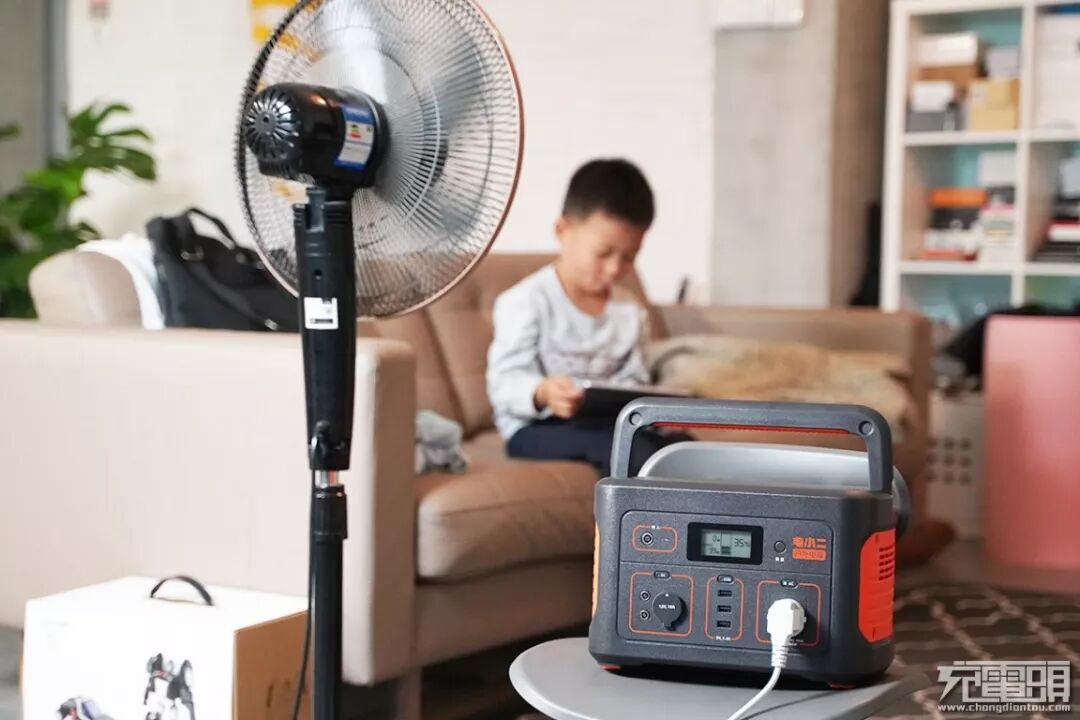 拥有正弦波AC 220V交流输出的电小二户外电源600S还够给风扇提供动力。