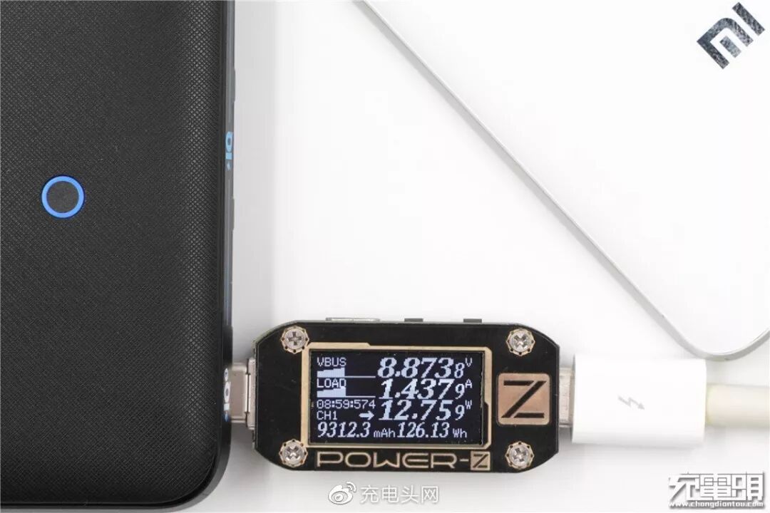 充小米5,电压8.87V,电流1.43A,功率12.75W,开启QC快充。
